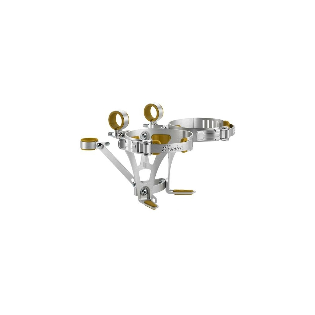 Ayant la particularité de s'installer sur le guidon, comme à l'époque, ce porte-bidon est conçu en aluminium avec une superbe finition satinée et arbore le logo mythique de la course. Il se caractérise par un système de maintien très efficace, y compris sur les routes non asphaltées, et permet d'adapter le diamètre de 70 à 78 mm afin de recevoir une grande variété de bidons et bouteilles, même si pour un style parfait, il est recommandé de le combiner au bidon assorti.