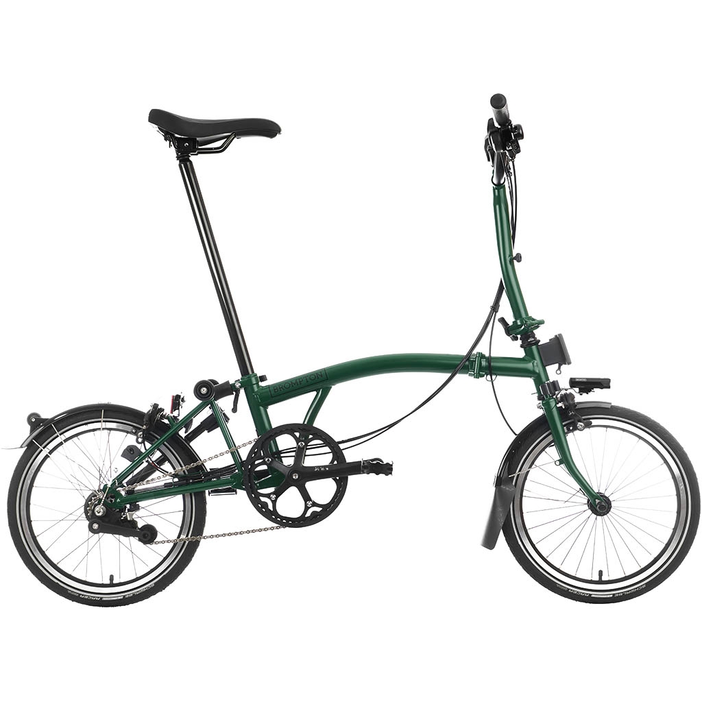 Le vélo pliant BROMPTON M6L présenté ici en coloris vert est à l'épreuve de la ville ! Cette bicyclette de choix, est intégralement conçue, fabriquée et assemblée dans l'usine londonienne de la marque depuis 25 ans.