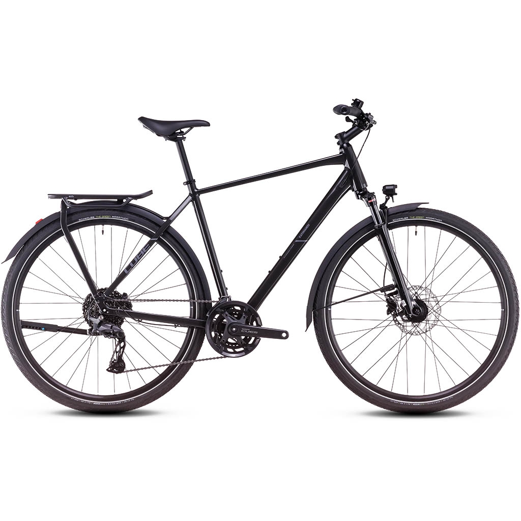 Le "Katmandu Pro" de CUBE est un VTC qui allie robustesse et élégance. Il réunit tous les paramètres d'un vélo de randonnée pour rendre vos explorations en deux-roues les plus agréable possibles : porte-babages, béquille, passage de câbles en interne, garde-boue,... Vous serez parfaitement équipé pour partir à l'aventure.