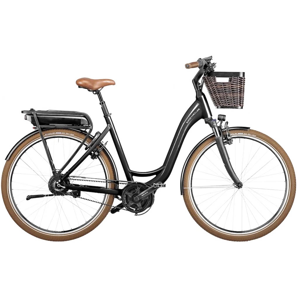Le vélo hollandais n’est plus seulement synonyme de balade tranquille en ville. Le "Swing Vario" de RIESE & MÜLLER, est la promesse de grandes balades, en montagne comme dans les vallées. La conduite souple du puissant moteur de Bosch est assistée par une fourche suspendue très sensible et une tige de selle, elle aussi suspendue. Comme tout vélo hollandais, il est bien entendu doté d’un panier de guidon, d'un porte-bagages et de deux paniers pour porte-bagages