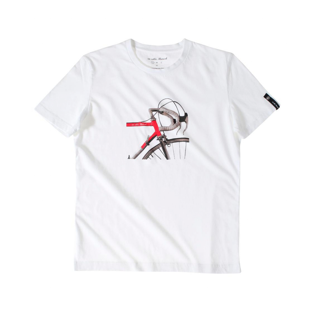 Le T-Shirt pour homme EN SELLE MARCEL Cintre, ici décliné en coloris blanc et rouge, est un maillot à manches courtes, conçu pour vos sorties à vélo ou simples balades.