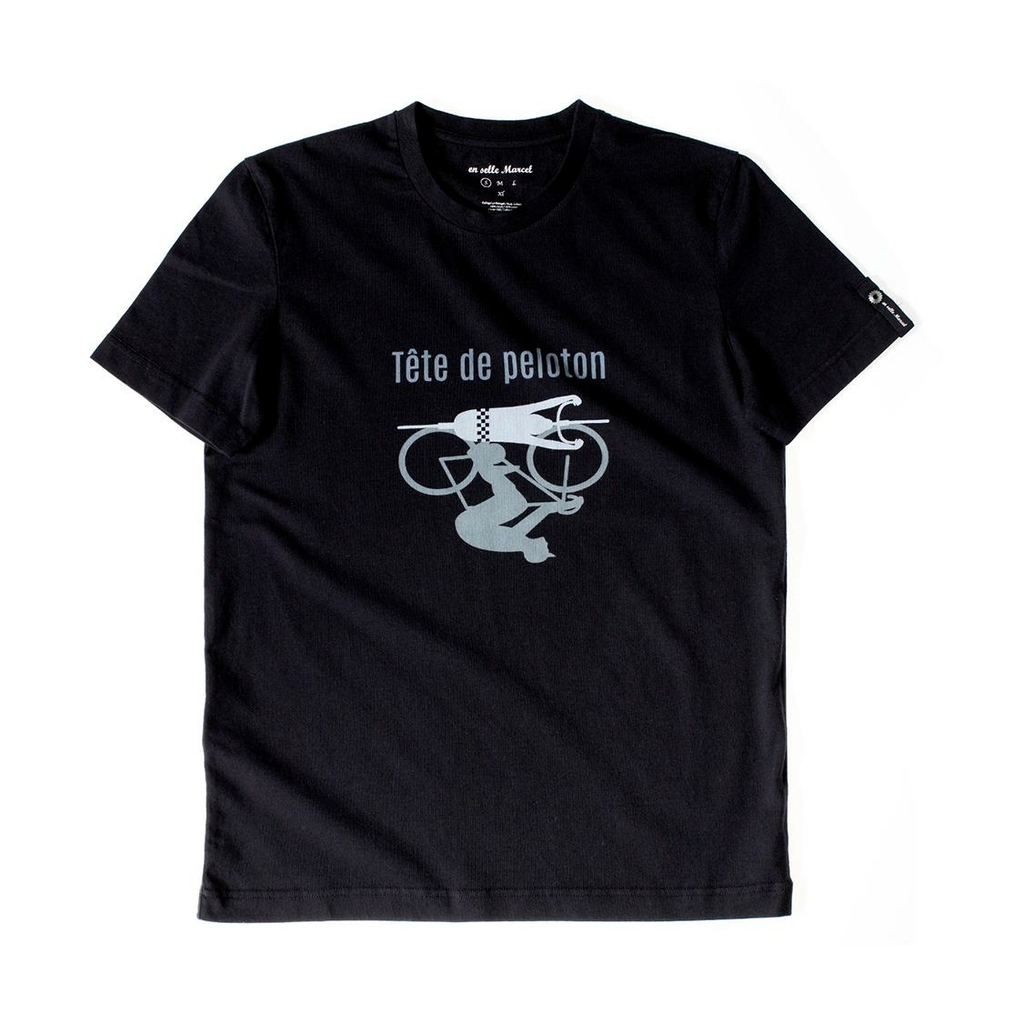 Le maillot pour homme EN SELLE MARCEL Tête de peloton, présenté ici en coloris noir et gris, est un modèle à manches courtes, conçu pour vos sorties à vélo ou simples balades.
