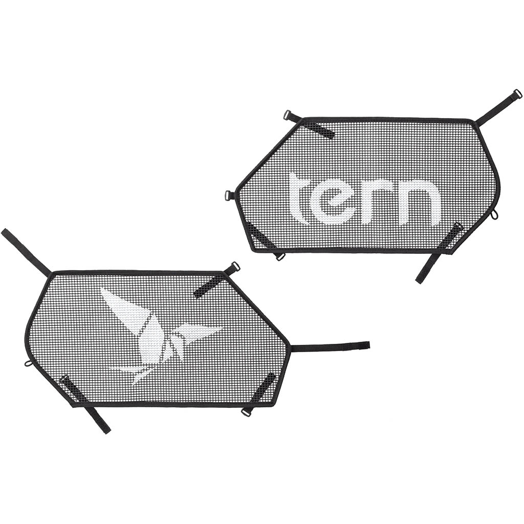 Le "Sidekick Wheel Guard L" de TERN, est une paire de mini jupes en filet qui protègent les pieds des jeunes passagers à l'arrière de votre vélo, qu'ils soient assis sur el Sidekick Seat Pad, la Captain's Chair ou sur un siège enfant sans repose-pieds avec protection pour la roue. La conception du Sidekick Wheek Guard L protège également le passager arrière en empêchant que les lacets, le manteau au la jupe puissent se coincer dans la roue arrière.