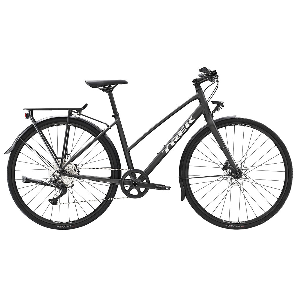 Ce vélo est doté d’un éclairage efficace, de pneus anti-crevaison, de garde-boue, d’un porte-bagages arrière, d’un cintre qui absorbe les vibrations, et de poignées ergonomiques IsoZone. Sa potence bénéficie de la technologie Bontrager Blendr grâce à laquelle vous pouvez fixer directement votre équipement. Pour finir, il vous est possible d’ajouter le DuoTrap S (non-fourni) intégrant un capteur Bluetooth®/ANT+ dans le cadre. Via ce concept, couplez votre FX 3 Disque Equipped Stagger et votre compteur ou votre smartphone sans capteur externe et chargez les données de votre sortie dans votre application de sport.