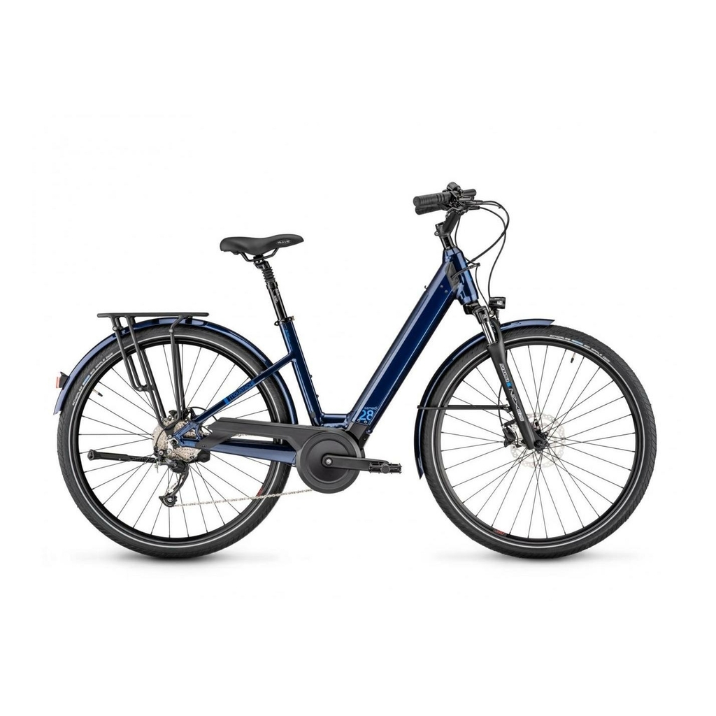 Le Samedi 28.2 Open 500 Wh de Moustache, ici décliné en coloris bleu nuit , est un vélo électrique dédié au cyclisme urbain. Ouvert aux cyclistes confirmés comme aux débutants, ce modèle endurant vous accompagnera sur les longues sorties, en week-end comme en itinérance à l'étranger.