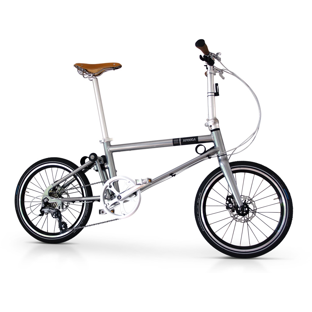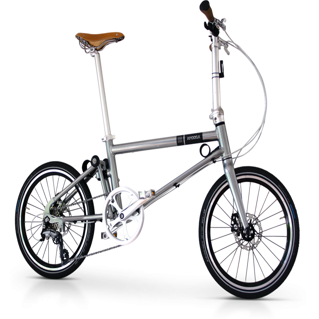 Le vélo AHOOGA "Push Style+ Disc OMG" ici présenté en gris clair est un vélo pliant à la fois performant et léger.