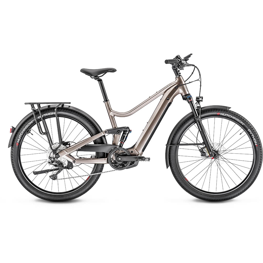 Confortable, le Samedi 27 Xroad FS 3 est doté d’un amortisseur à air Moustache Magic Grip Control. L’adhérence et la performance sont optimisées, et les pneus Hutchinson Python offrent rendement, grip et motricité.
