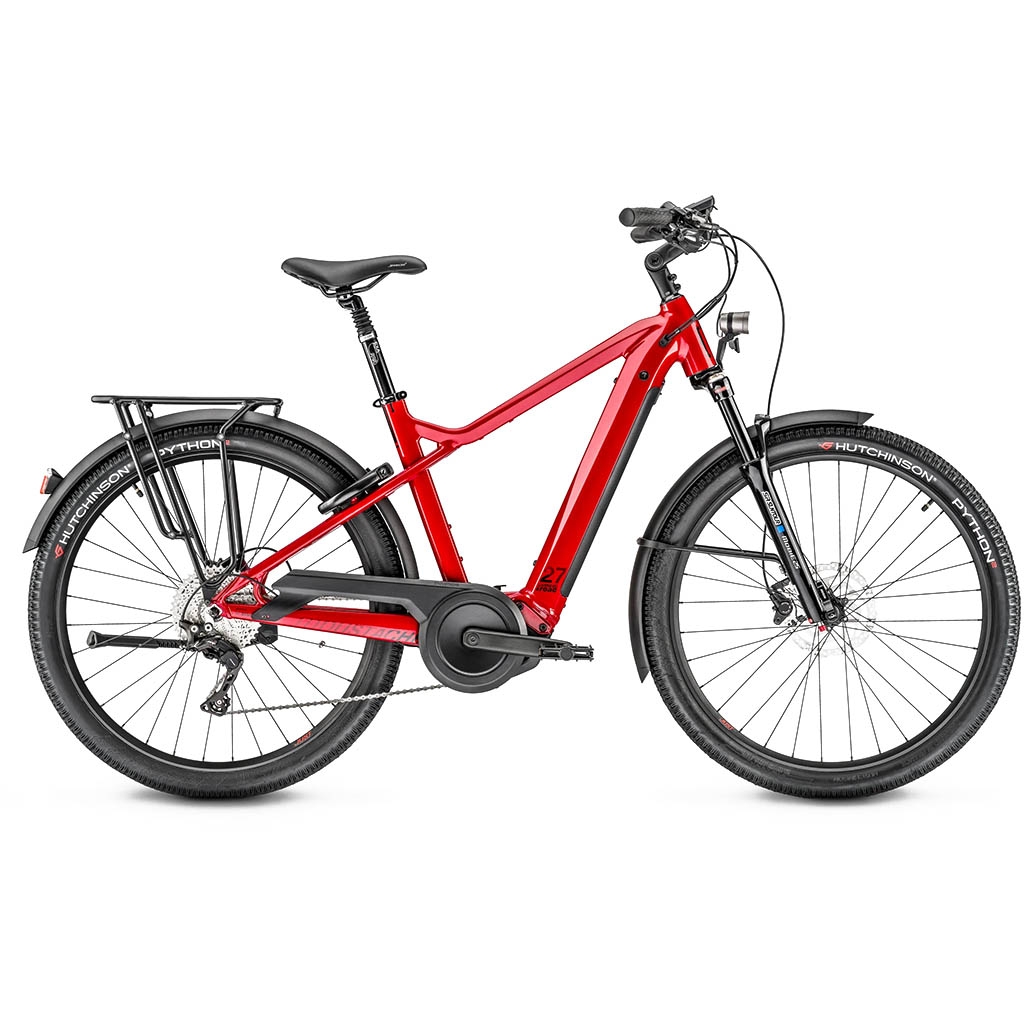 Doté d'un cadre rigide en aluminium 6061 à tubes hydroformés, le XRoad 5 intègre dans ce dernier la batterie Bosch PowerTube, chère à la marque vosgienne, de 625Wh et d'une autonomie estimée de 162km. Ce qui vous permet de programmer de longues balades en toute tranquillité. La fourche télescopique Suntour Mobie-25 s'occupe d'absorber les aspérités sur votre trajet pour vous apporter un maximum de confort. Du côté des roues, on retrouve une paire de jantes en aluminium. Ces dernières chaussées de pneus Hutchinson Python 27.5x2.10 qui offrent un excellent rendement et qui participent à améliorer la motricité.